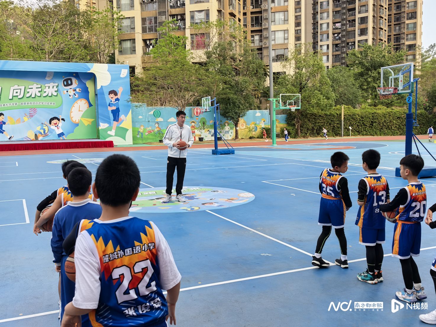 而类似的场景,也在龙华区龙腾学校上演。该校体育教师廖年钜刚结束一节体育课,就被一群学生团团围住。“老师,我们看到你上‘粤BA’给学校争光啦!”孩子们的欢呼声此起彼伏。